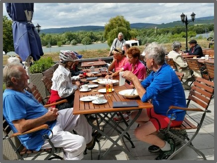 ![]() Die neue Schiersteiner Rheinbrücke nimmt Formen an. | ![]() Bereit für unsere Radtour Wann geht's los? | ![]() Wir rasten und genießen das Wetter und die Landschaft, einfach traumhaft. |