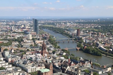 Später, auf dem Maintower, herrschte zunächst gewaltiger Andrang. Das verlief sich dann auf der oberen Plattform. Auch wegen des herrlichen Wetters hatte man einen fantastischen Blick über diese Metropole und weit ins Umland und auf den Taunuskamm. Eigentlich war das Programm hier beendet, da wir aber eine so homogene Gruppe waren, wurde der Abschluß im Café Hauptwache beschlossen.