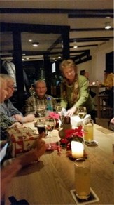 Dieses Mal – also 2016 - wurde ein Angebot unterbreitet, das sich im Nachhinein als äußerst lohnenswert erwiesen hat. Im Monatsblatt ausgeschrieben wurde Weingut Markloff in Walluf. Es gab kein besonderes Silvestermenue, aber auf Nachfrage in der Runde war jeder mit seinem Essen sehr zufrieden, zumal die Bewirtung ohne Verzögerung und sehr aufmerksam vonstatten ging. Die Atmosphäre in unserer Favorit-Runde, aber auch im gesamten, sehr gut besuchten Lokal, war angenehm, später wurde es sehr lustig – mit Tanz. Der Wirt hielt, formvollendet, eine kurze Begrüßungsansprache, als er die meisten seiner angemeldeten Gäste im Lokal wußte. Um 20 Uhr ertönte, wie angekündigt, Life-Musik vom Keyboard, zwischendurch bot der sehr engagierte Musiker mehrmals eine wunderschöne Saxophoneinlage. Um exakt Mitternacht wurde, nach Ansage durch Wirt und auch Musiker, das neue Jahr begossen mit Sekt – vom Wirt spendiert!! Ebenso wurde eine wirklich hervorragende Mitternachtsfleischbrühe kredenz, die auch später lauwarm noch mundete – ebenso spendiert! Man merkt, Herr Markloff kennt und schätzt seine Gäste. Damit keine falschen Rechnereien beginnen: der Eintritt war frei! Draußen wurde geknallt, im Lokal wurde getanzt. Unsere Gruppe hat sich um ca. 2 Uhr am Morgen verabschiedet. Es war schön, es war toll, dem Anlaß entsprechend und wir Teilnehmer freuen uns auf das Silvesterfest 2017.