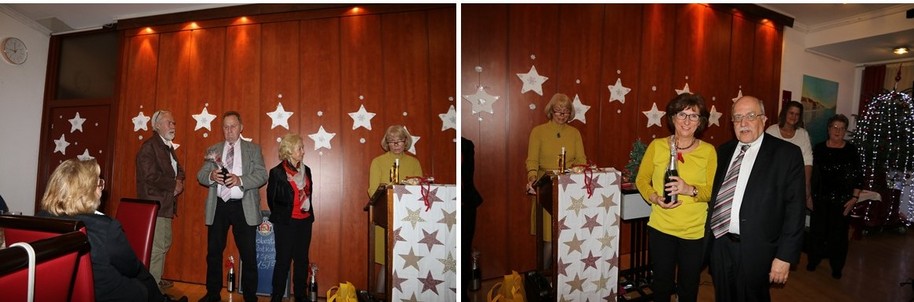 Das Jahresende wurde eingeläutet durch die jährliche Adventsfeier. Der Raum wurde dank unserem kreativen Mitglied in ein festliches Kleid getaucht. Es war ein Abend mit inbrünstigem Gemeinschaftsgesang, stimmlich unterstützt durch einen unserer Chorsänger. Ein abwechslungsreiches Programm, bestehend aus längeren und kürzeren Vorträgen und dem Dank der Gruppe für die engagierten Teilnehmer, füllte den Abend. Die Feier, sehr gut besucht, bot uns allen eine Möglichkeit zur freudigen Begegnung mit alten und neuen Bekannten und es ergab sich manch herzliche Begrüßung. Die Adventfeier ist insofern ein großes Gruppentreffen.