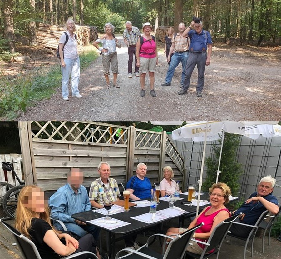 Unsere Sonntage sind ausgefüllt. Schon der Treff am Bahnhof bringt oft lebhafte Gespräche, später vom exakten Wandertreffpunkt aus bietet die Geselligkeit für jeden Geschmack etwas. Häufiges Lachen erweckt jeden aus einer Tristess, aber auch Schweigen ist möglich. So manch einer genießt für eine Weile stille Gedanken in einer Gruppe von Gleichgesinnten, um sich dann doch in ein nettes Gespräch einzugliedern. Die Gegend wird sogar von Besichtigungstürmen aus erkundet. Ein Eisstand am Weg wird natürlich genutzt. Mal geht es bergauf und bergab, mal ebenerdig. Also für jeden etwas. Und dann öffnet sich zwischen den Bäumen der Blick in ein herrliches Tal. Auch durch die Wanderungen lernen wir unser Rhein-Main-Gebiet kennen. Im Sommer geht es in den Wald, im Winter ebenfalls, dazwischen werden auch Feldwege begangen. Und immer wird eine kleine Rast eingelegt. Die wird verschönt durch eine kleine Gabe. Manchmal sind die Plätzchen selbstgebacken. Einen runden Abschluß bietet dann die Einkehr. Alles freiwillig, aber eine harmonische, meist lustige Runde incl. des Hochleben-lassens des Wandesführers. Kein Wunder, daß an den Sonntagen oft die gleichen Gesichter zu erkennen sind. Es ist eben immer wieder ein schöner Sonntag, ganz unabhängig vom Wetter. Wie lautet das Motto der Wanderer? Es gibt kein schlechtes Wetter, es gibt nur schlechte Kleidung